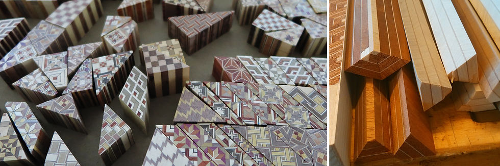 2015年 中国家具協会&SWEDESH WOODコラボプロジェクトの際、研修旅行に行くスタッフに頼み、マルムステン学校やPINEの植林から自動化された製材ラインなど沢山の写真を撮ってきてもらった。そこでマルムステンではプレス技術を利用した表現方法や家具全般の加工技術を研究していることを知る。2年後の2017、小田原講演会の時に工芸技術所で箱根寄木細工のサンプル、そして工芸について少し知ることができた。以前に撮影してもらったスウエーデンの伝統工芸と共通点が多いと感じた。